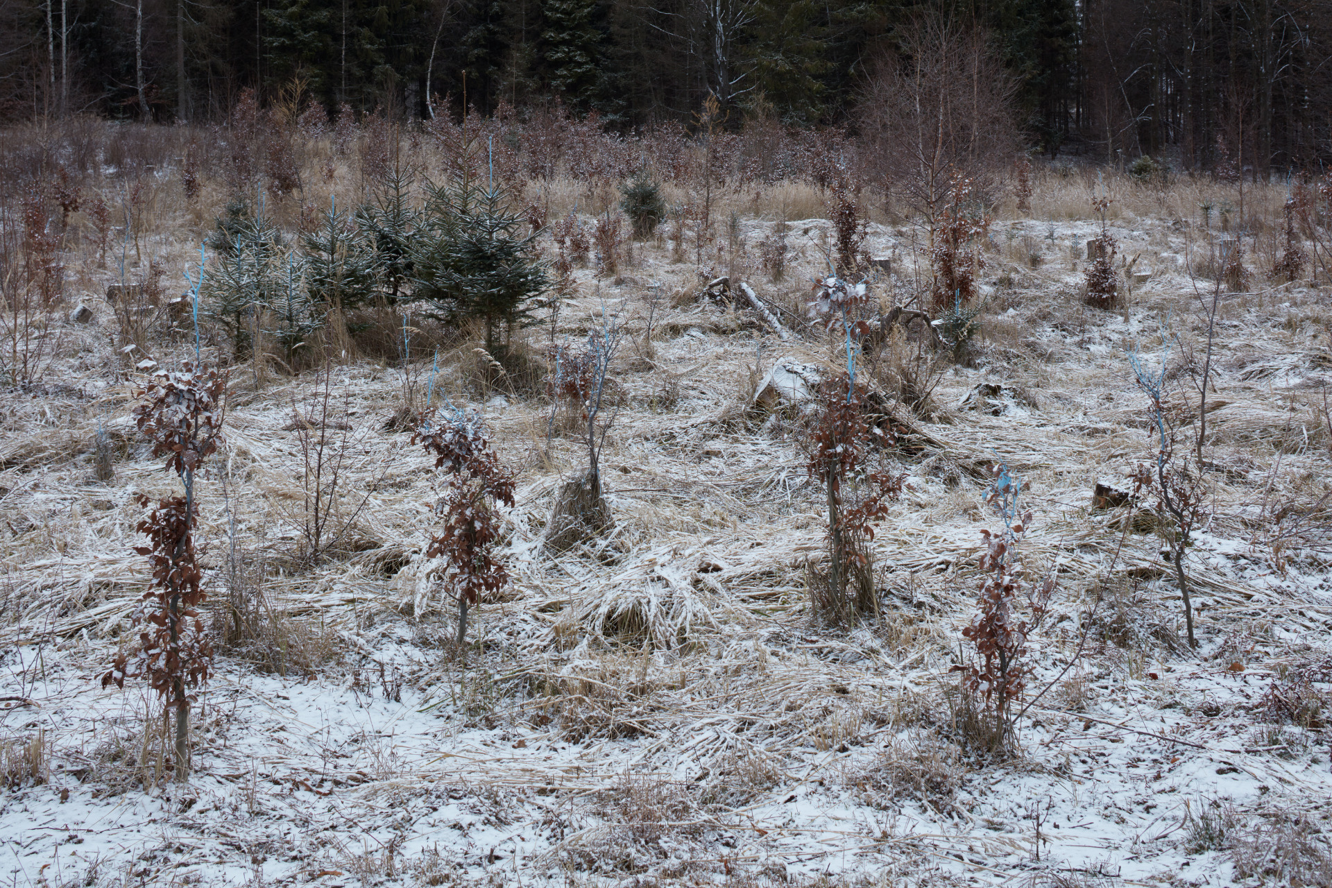 Než ze sazenic vyrostou silné a zdravé stromy, je třeba je chránit před zvěří, škůdci i buření. Proto o ně roky pečujeme.